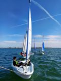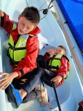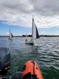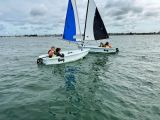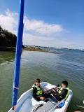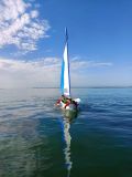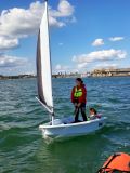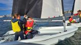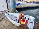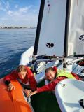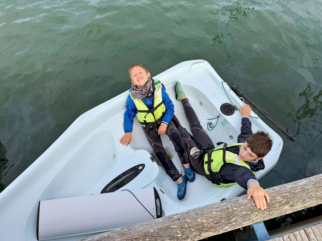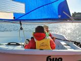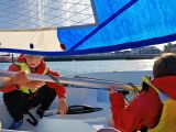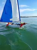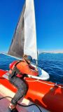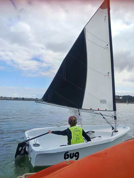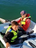 Lors de la séance suivante, toujours avec un beau soleil, nous avons appris à maîtriser des gestes plus techniques : virer, empanner, s'arrêter...