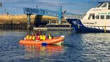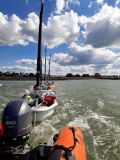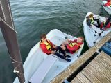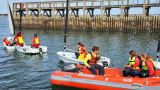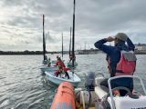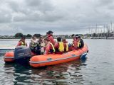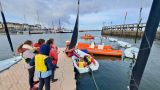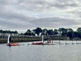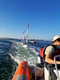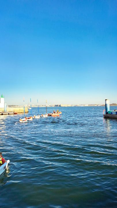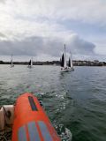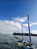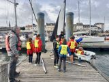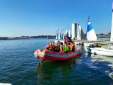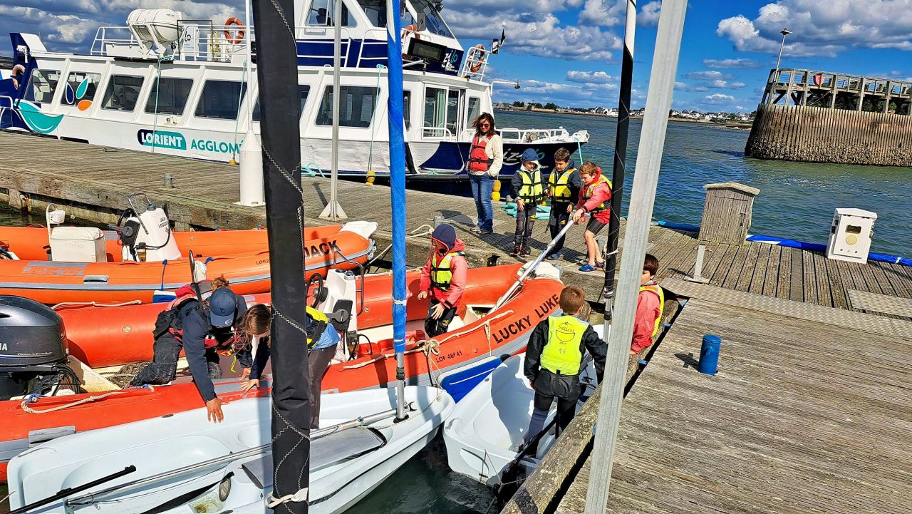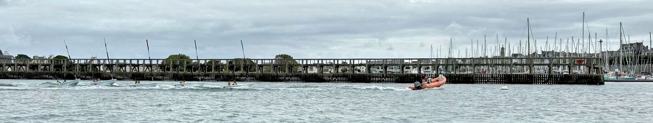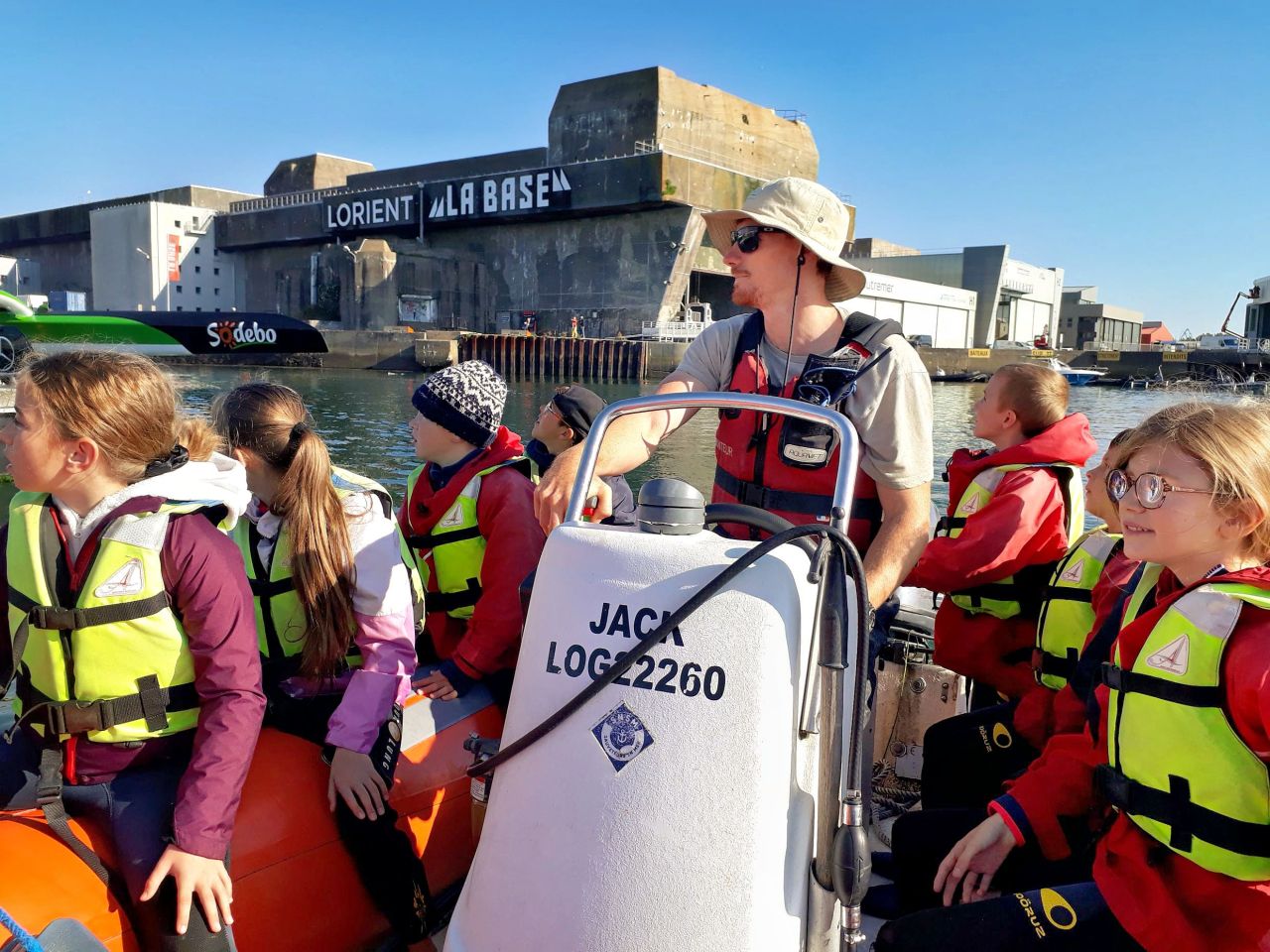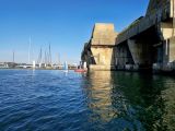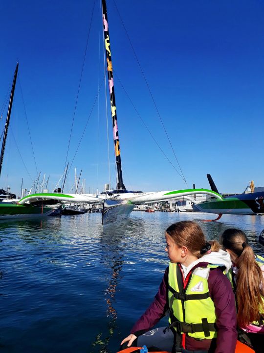 Durant la dernière séance, plus à l'aise dans les embarcations, nous avons effectué la traversée de la rade pour visiter les alvéoles du K3 de la base des sous-marins. Nous avons pu nous approcher au plus près des bateaux de course au grand large.