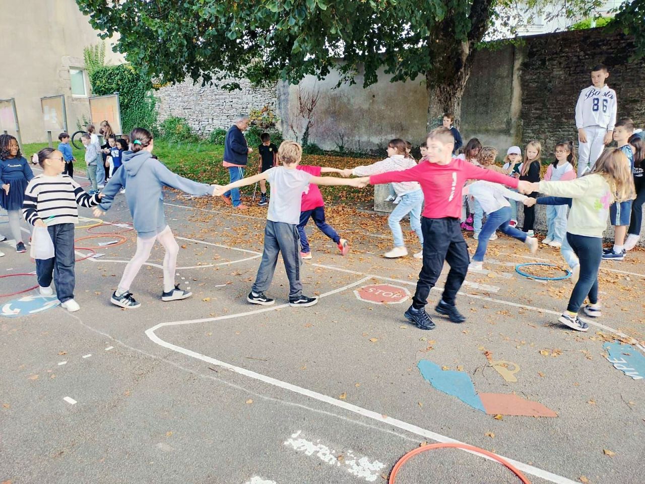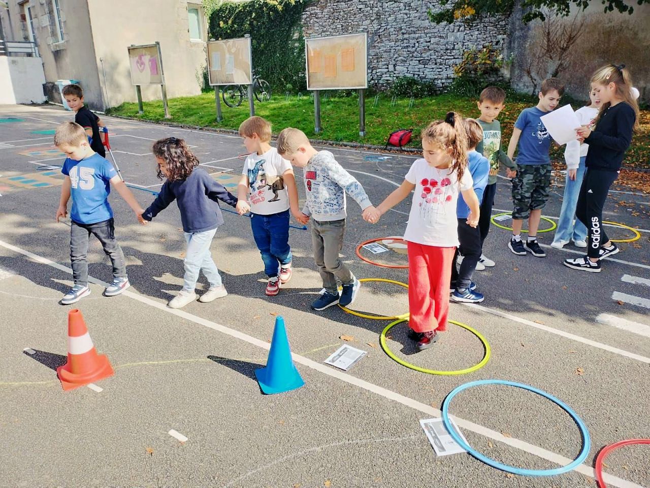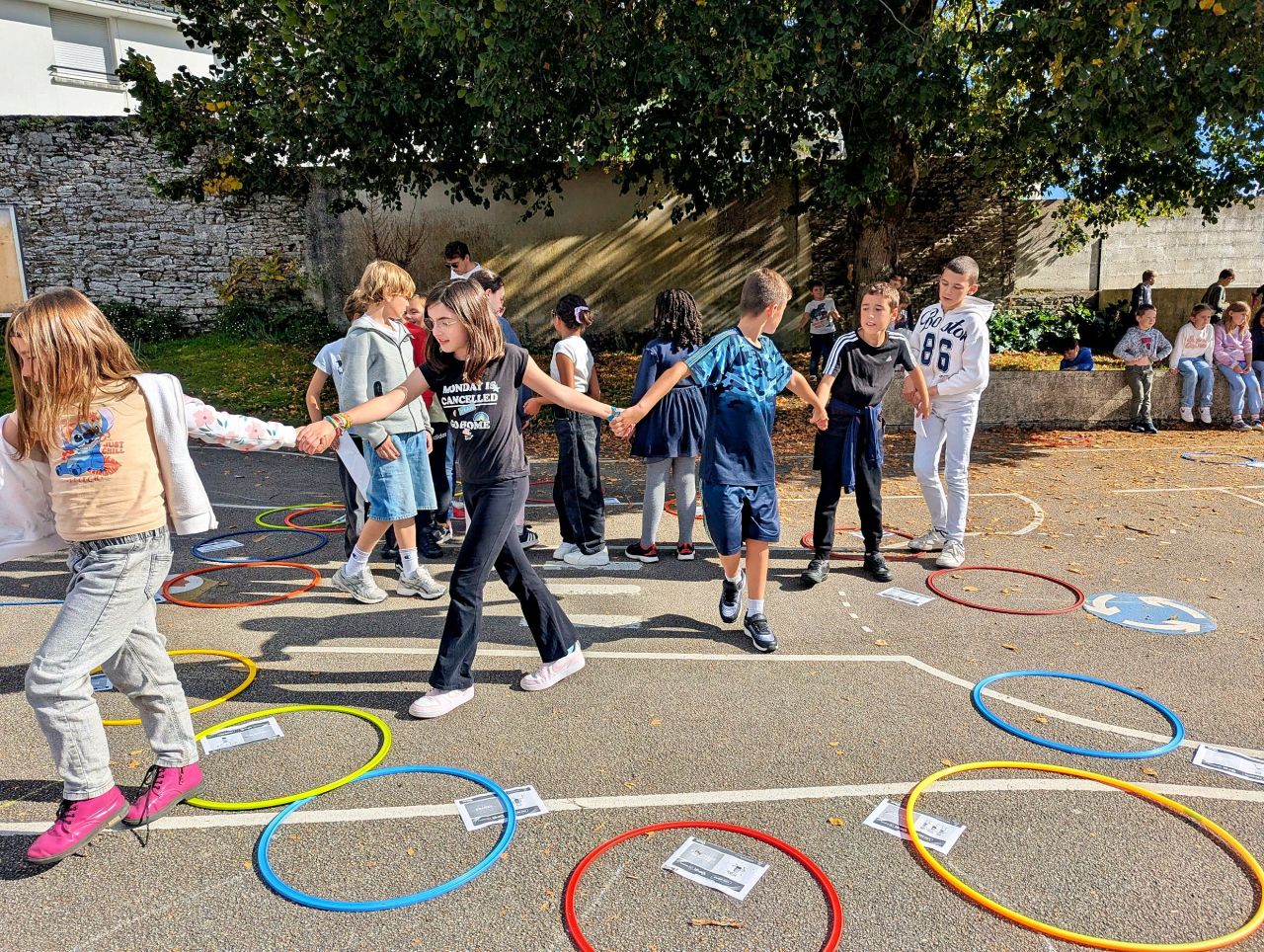 Ce jeudi, les classes de GS à CM2 se sont retrouvées sous le beau soleil pour le grand jeu de la rentrée : BOUGE AVEC LES REGIONS !