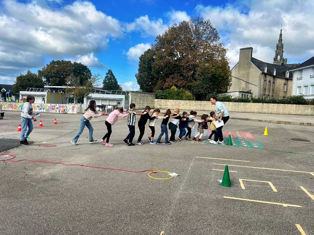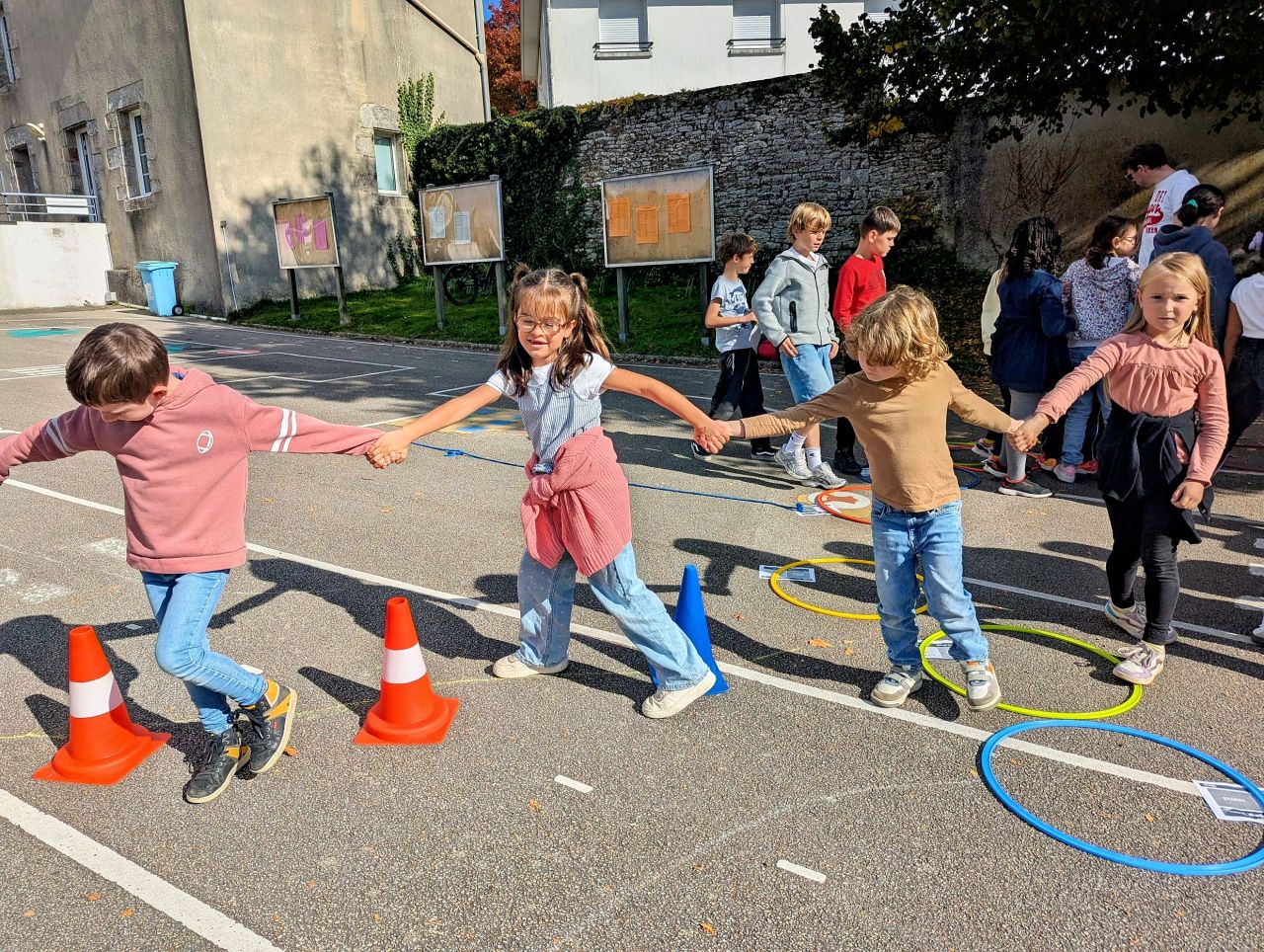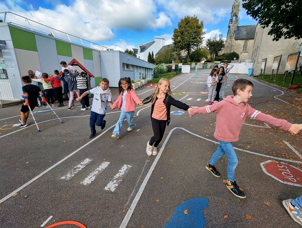 Ce jeudi, les classes de GS à CM2 se sont retrouvées sous le beau soleil pour le grand jeu de la rentrée : BOUGE AVEC LES REGIONS !