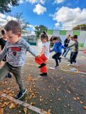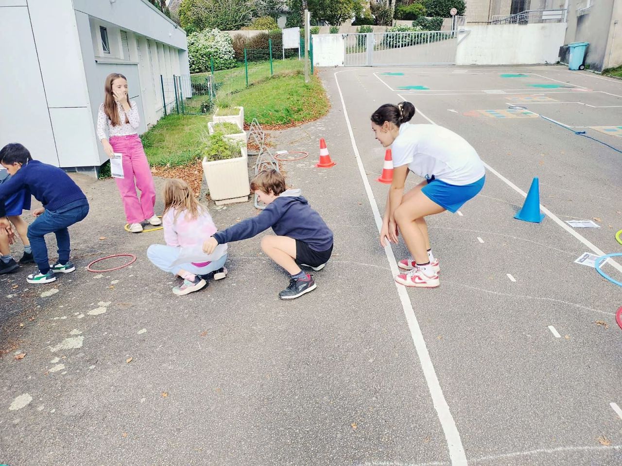 Les groupes d'enfants multi niveaux ont découvert les caractéristiques des régions de France : les paysages, les monuments, les spécialités culinaires, les sports, les animaux. Pour trouver les réponses il fallait réaliser des petits défis sportifs en groupe : fentes, sauts de grenouille, funambule, montées de genoux, anneaux humains, slaloms...